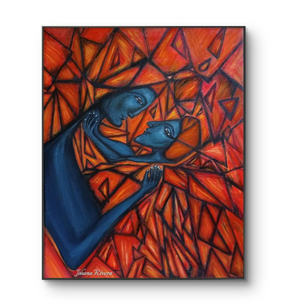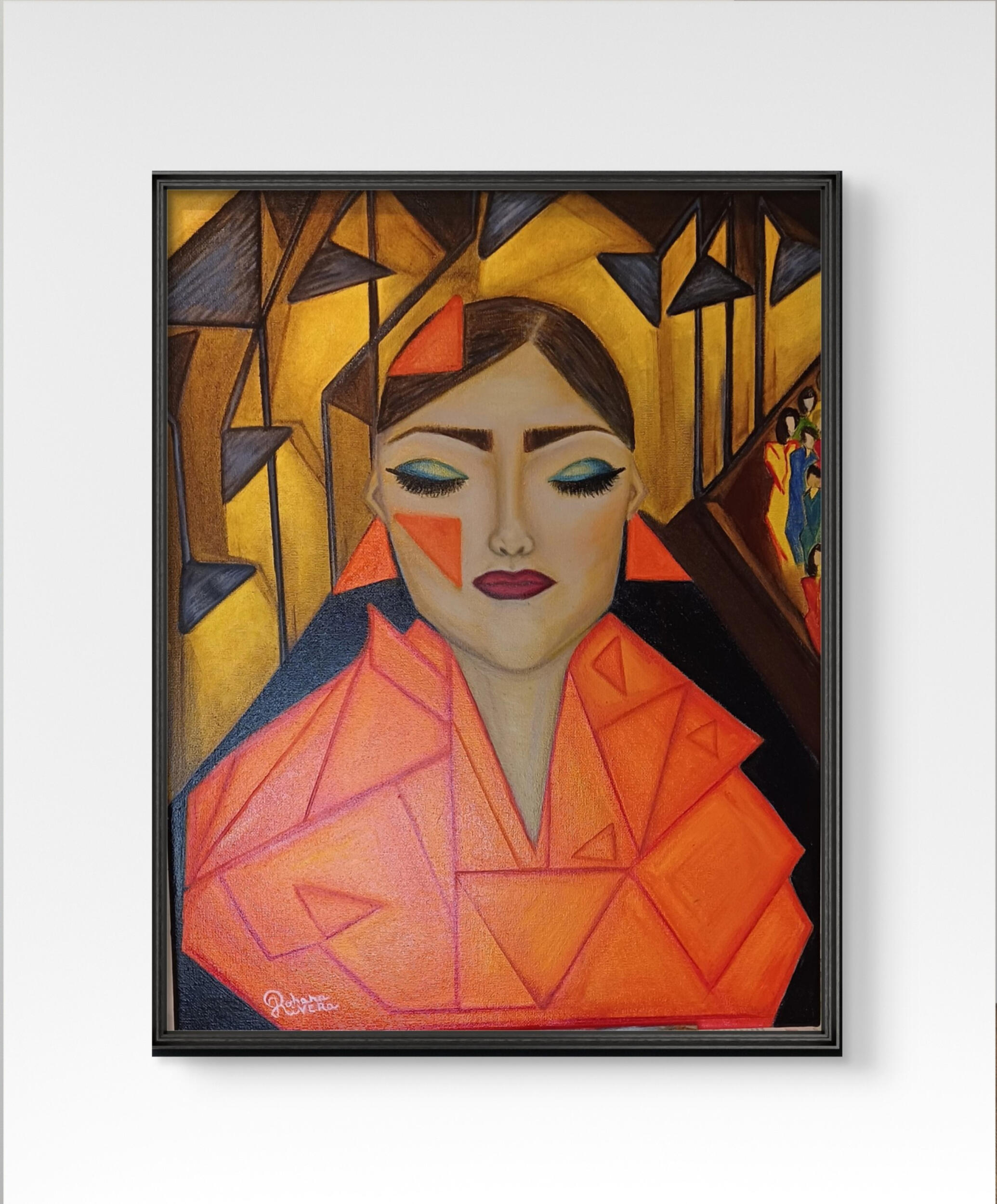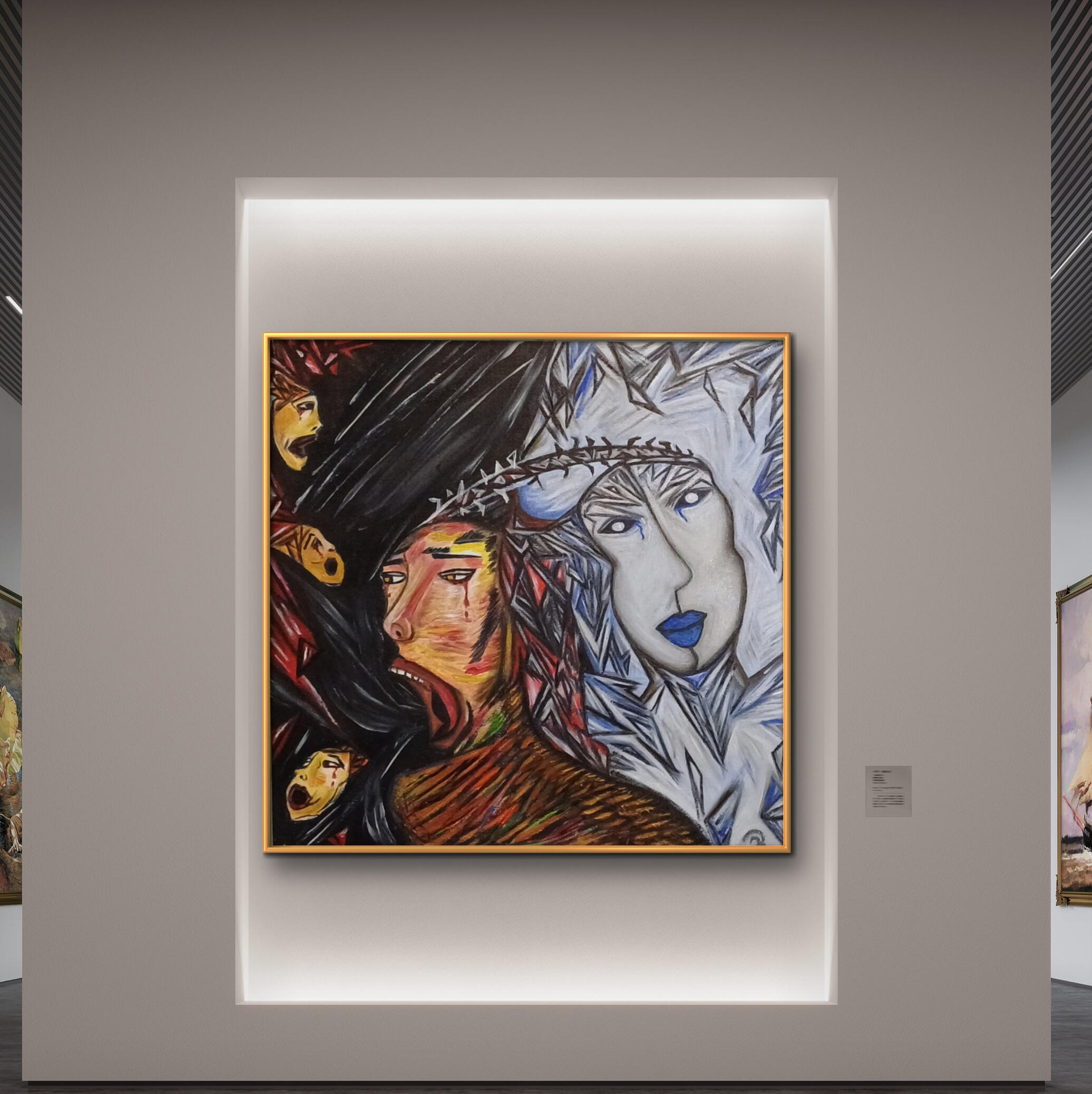 BURNING PASSIONA COMBINATION WITH OIL AND ACRYLIC PAINTING ON CANVAS 50x40 cm: This painting captures a chapter of intense passion in my life, inspired by the figures of my idol, Picasso. While honoring their influence, I have transformed these forms into something deeply personal and uniquely mine.