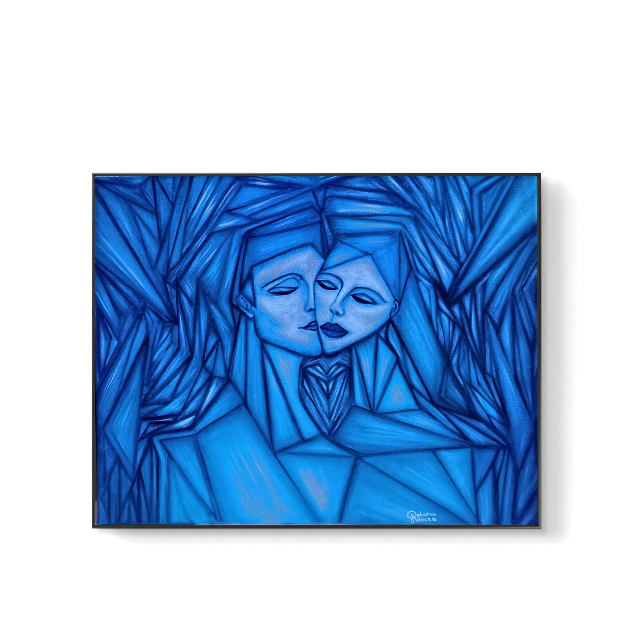 LOVE STORYOIL PAINTING ON CANVAS 50x40 CM: This blue-toned piece reflects a deeply personal chapter of love in my life, capturing its tenderness and emotional depth through expressive brushtrokes.
